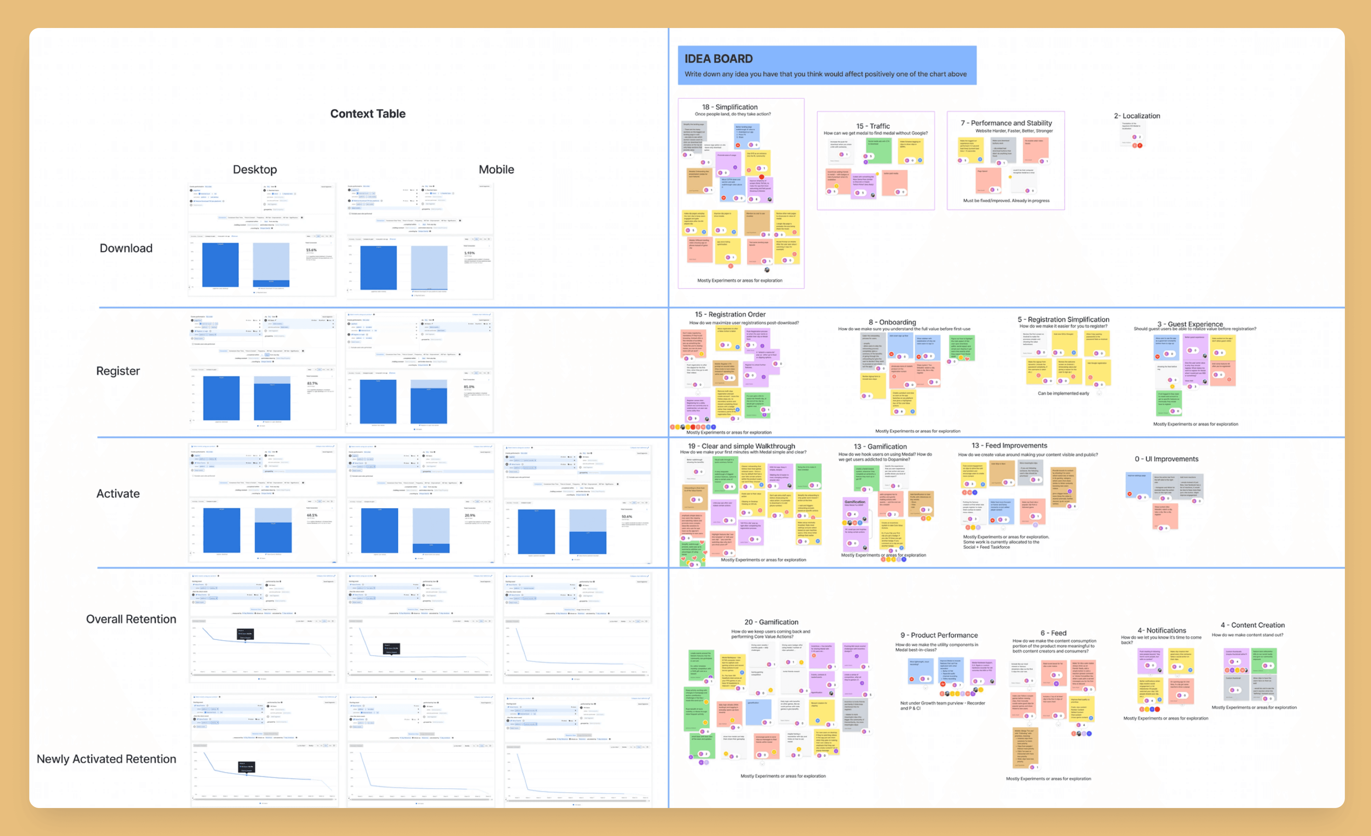 I organized a working session with members from different cross functional teams to help sort through all the data that was gathered in the research, a combination of insights from talking to users and data from the analytics.